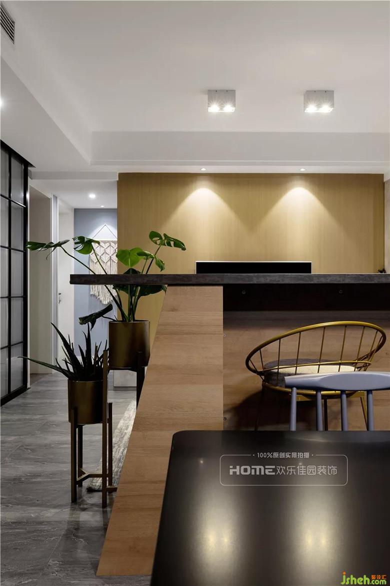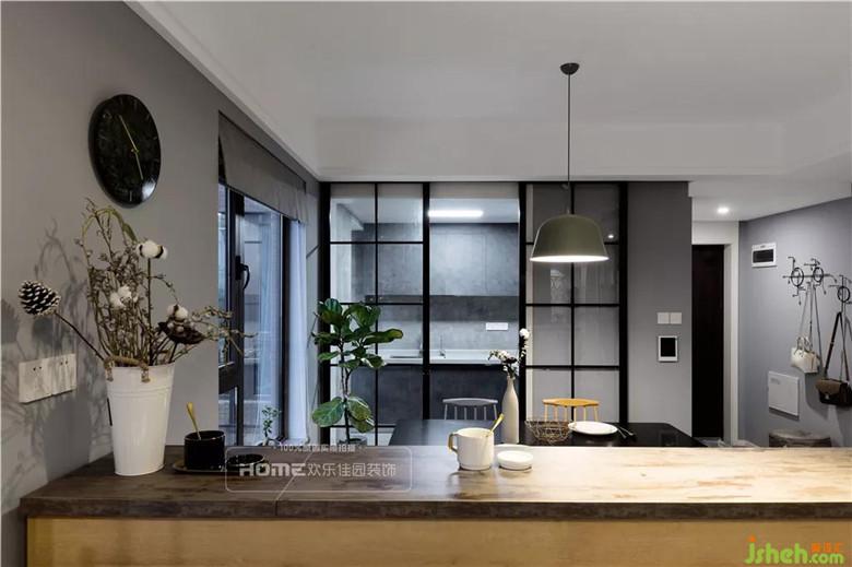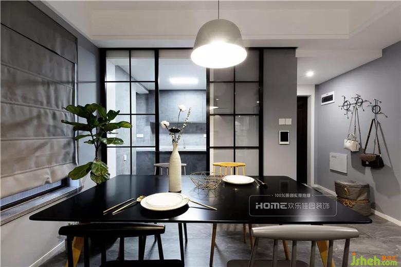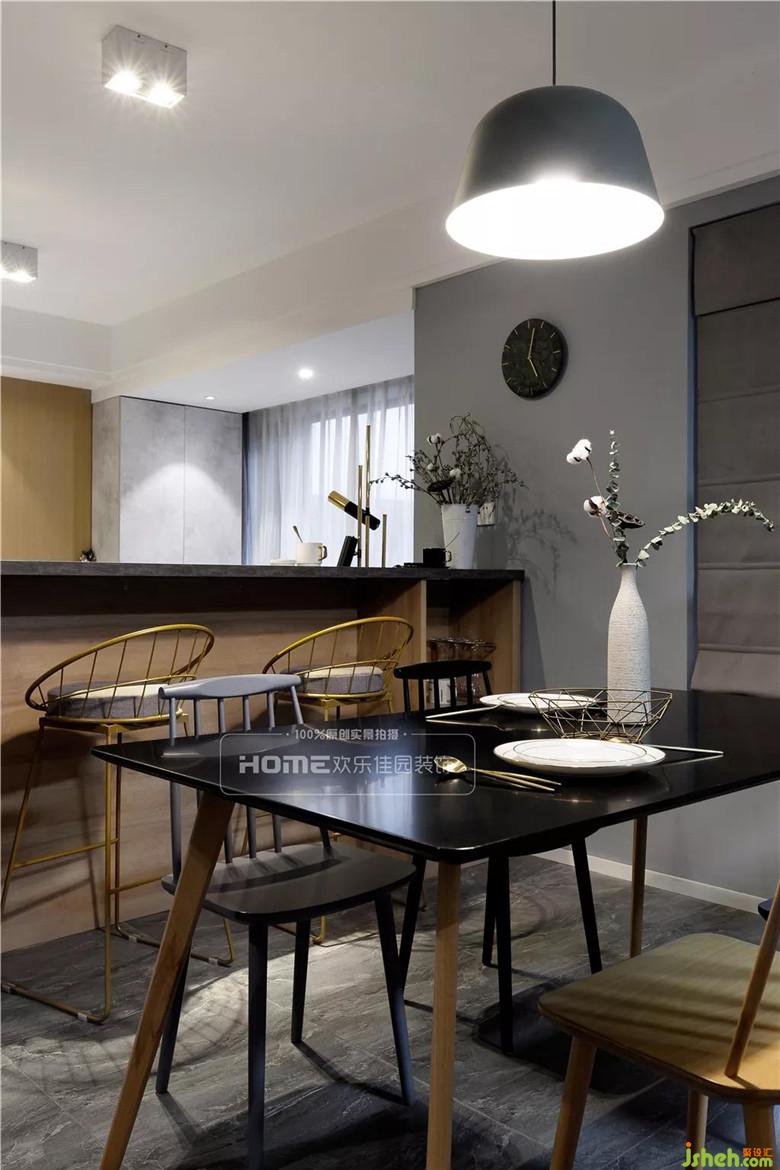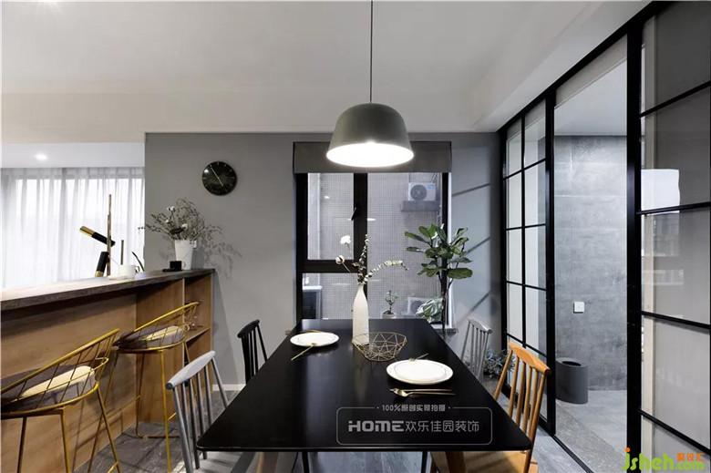 原始戶型的餐廳結(jié)構(gòu)墻多余,影響采光和通風(fēng)效果,設(shè)計(jì)師將多余的墻體拆除,不僅增加餐廳空間的寬敞性,還大大提升操作空間。加之靜謐黑與灰,局部木色活躍整個(gè)空間。