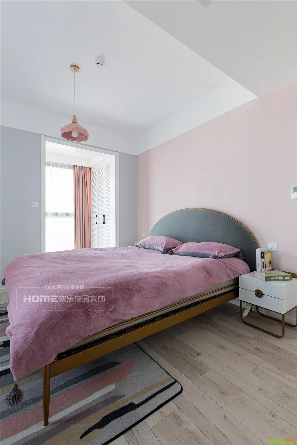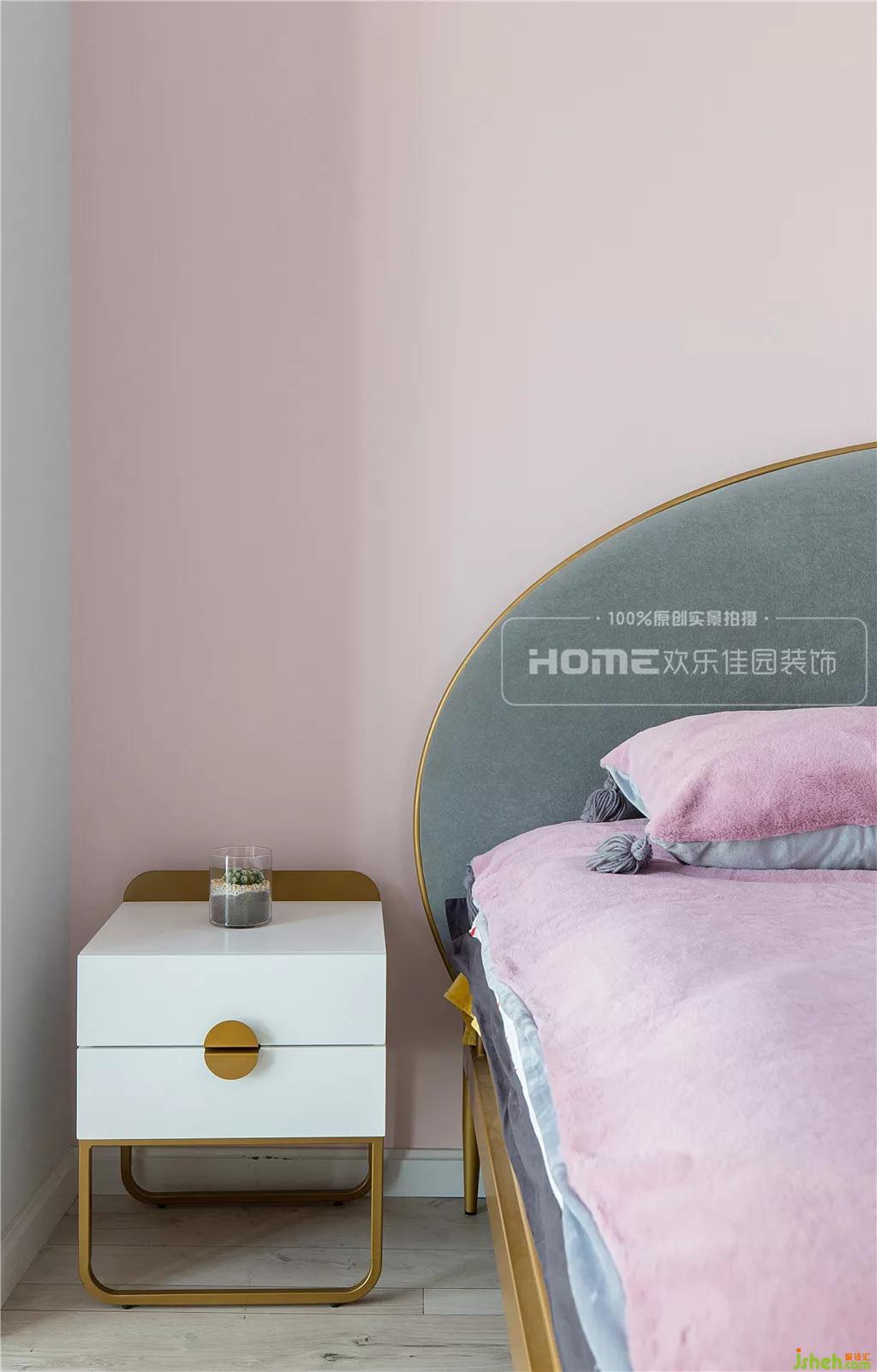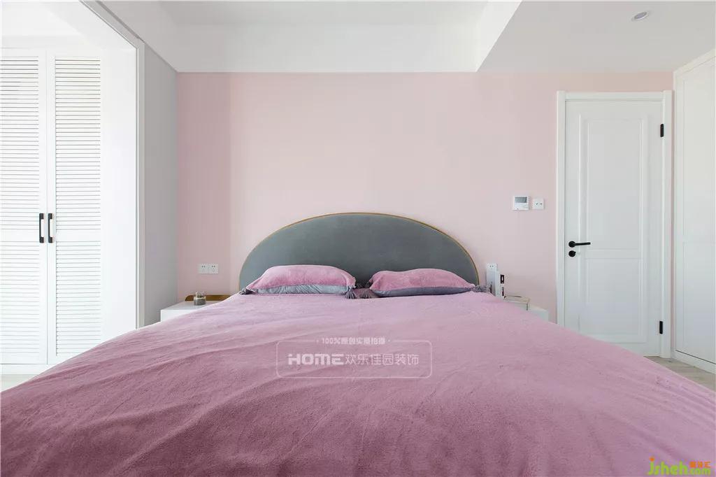 毫不例外,室內(nèi)設(shè)計(jì)師在主臥的色彩延續(xù)了全屋的格調(diào),恬靜柔和、溫馨舒適,在一個(gè)寧靜的空間里,放入一抹粉色系的浪漫,氣息瞬間高漲,賦予生活更多的可能性。