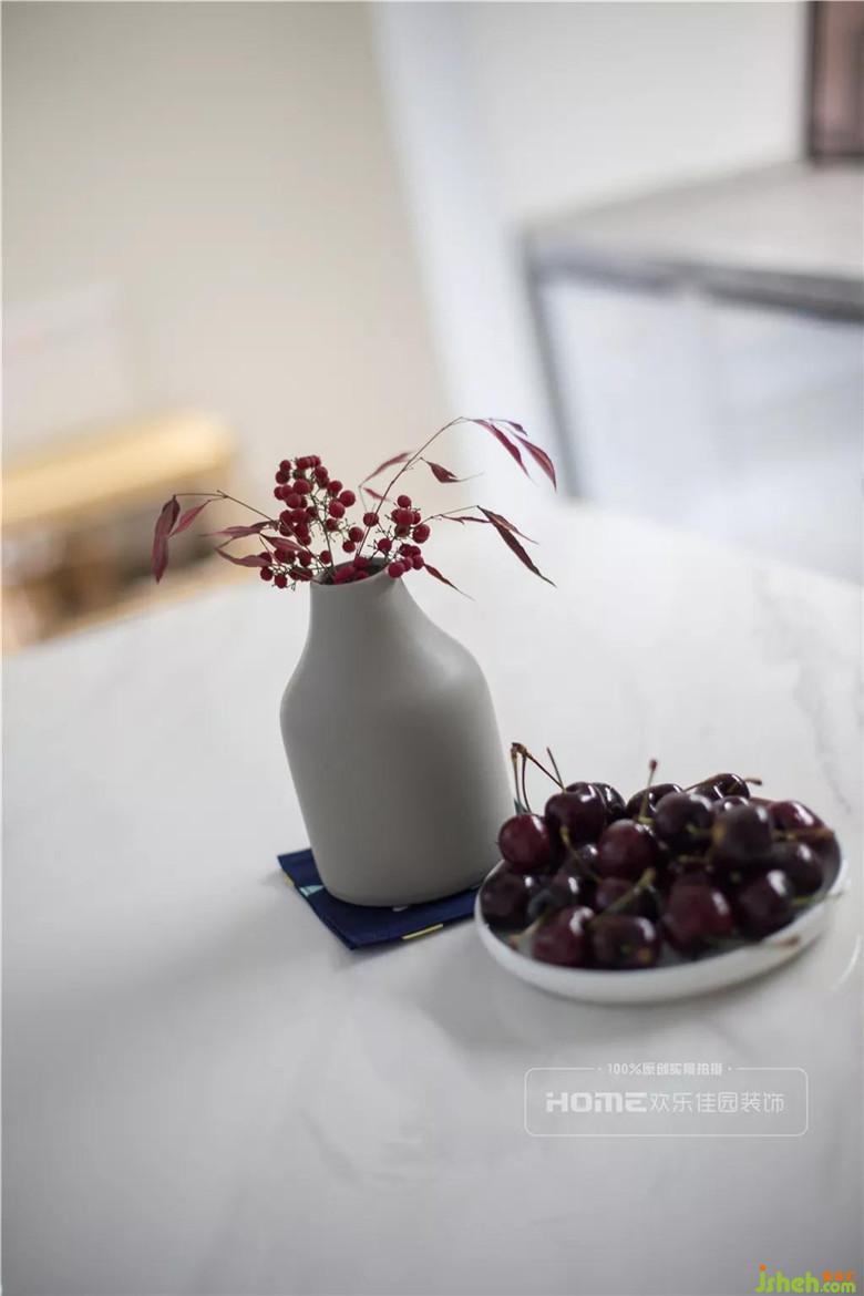 這是一套中小戶型,泡泡喜歡現(xiàn)代偏北歐的混搭風(fēng),設(shè)計(jì)師在公共空間采用開放式格局做規(guī)劃,僅以家具界定客餐廳兩個(gè)不同區(qū)域,化解小坪數(shù)的局促,讓視覺得以延展。