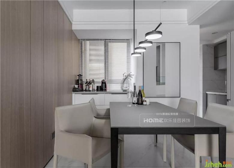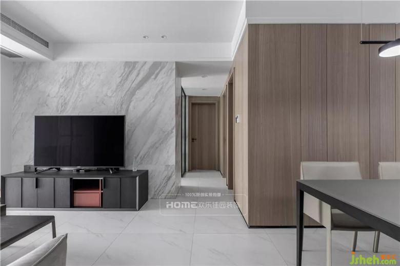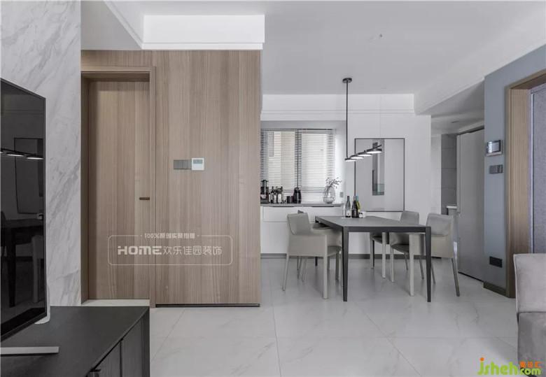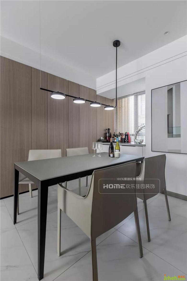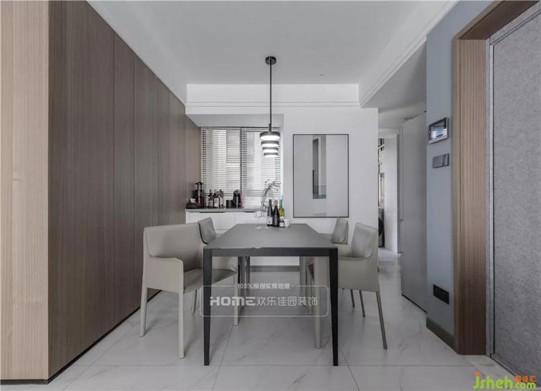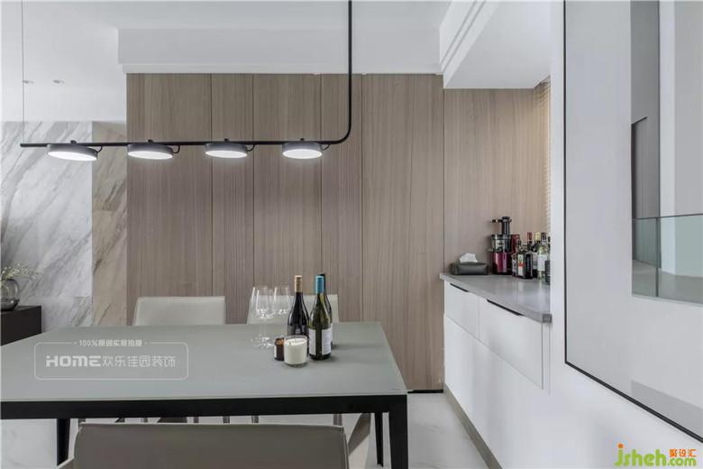 餐廳空間大面積木飾面板的運用,能夠起到很好的協(xié)調(diào)作用,同時,木飾面板作為空間的過渡,與電視背景墻的石材兩相對比,巧妙地利用中性的色彩打破僵持的局面,從而更加凸顯空間的質(zhì)感。