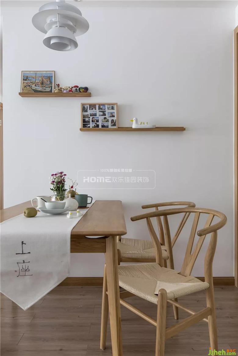 一盞吊燈保證基礎(chǔ)的照明,白色的燈,木色的餐桌椅,同色系的隔板,擺上照片合集、裝飾擺件,別致的溫暖,讓家回歸煙火氣息。