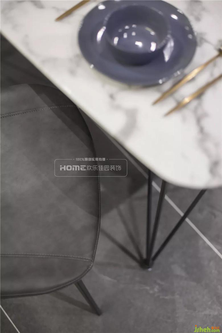 餐廳是家里除去廚房最有煙火味兒的地方。雅致的白色和肌理清晰的大理石餐桌搭配磨砂質(zhì)感的皮質(zhì)餐椅,賦予了餐廳一定的現(xiàn)代感,餐邊柜上的小玩意兒總是很應(yīng)景,內(nèi)置的燈帶給它們鍍上了一層金色,仿佛在向外界訴說,它們是這個區(qū)域的主角。