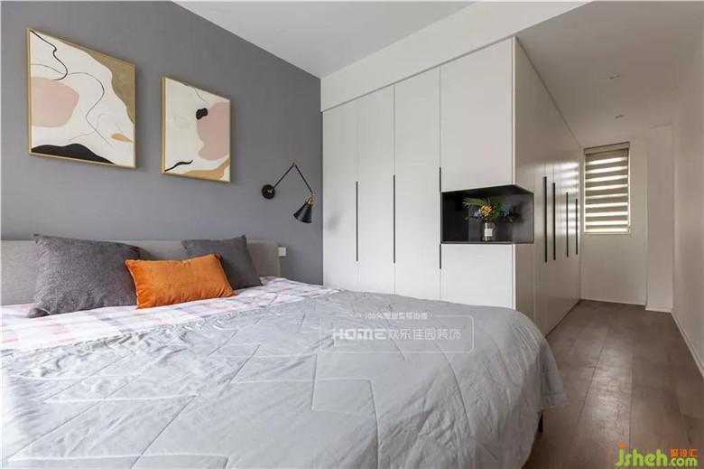 素雅的灰色格調(diào),渲染出主臥寧?kù)o的氛圍,自然光線照射,通透明亮,搭配柔和的掛畫(huà)和窗簾,給業(yè)主帶去優(yōu)質(zhì)的睡眠空間。