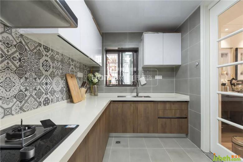 U型櫥柜的設(shè)計(jì),開(kāi)通廚房與餐廳空間,利用推拉玻璃門建立了隔斷,增加廚房的操作空間,在廚房靈活的走動(dòng)也不怕碰到,還增大了就餐與備餐的功能性。