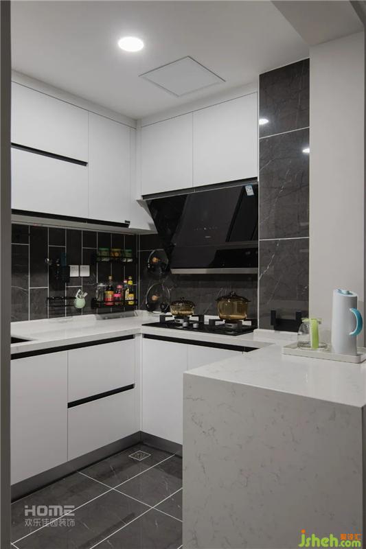 廚房的采光不好,設(shè)計(jì)師將門取消,做成敞開(kāi)式廚房,讓整個(gè)空間開(kāi)闊起來(lái)。