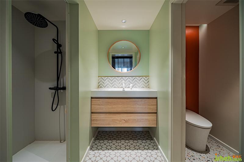 三分離衛(wèi)生間,并在不同功能區(qū)采用不同的材質(zhì)以及顏色搭配,滿足不同功能的使用場景。