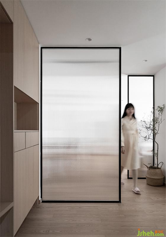 成都裝修設計材質的選擇上采用石膏板點配點光源貫穿整個空間塑型,公共空間墻面大面積使用乳膠漆進行涂飾,白色墻面在暖光下墻面顯得格外生動,猶如絲帶在起舞;