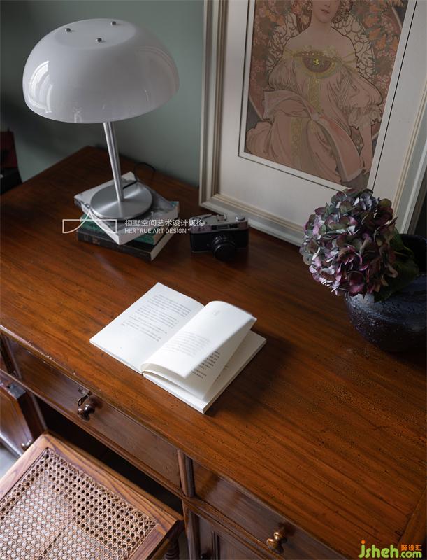 書桌是小時候就在用的老家具,承載著童年的美好回憶,重慶家居設(shè)計(jì)這次新家裝修特意搬了過來,書柜的配色便是參考書桌的感覺來的,非洲柚木,黃銅拉手,細(xì)管長虹玻璃,濃郁的復(fù)古味兒,封閉和開放形式相結(jié)合,玻璃元素的參與讓它有了通透感。