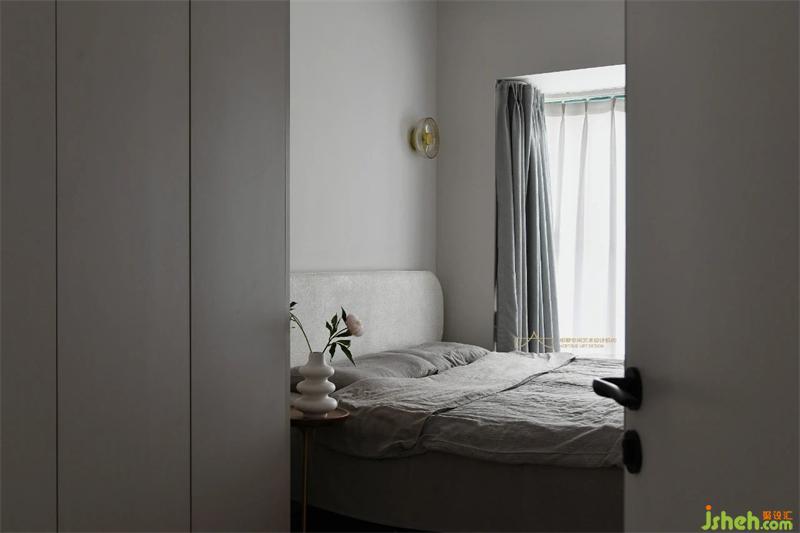 永遠保持少女心,但始終喜歡簡單?,摤摰姆块g簡潔舒適,頭頂一抹粉的加入讓氛圍驟然生動起來。清風徐徐,窗簾悠然擺動,影影綽綽,光影若夢。