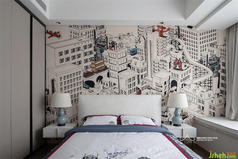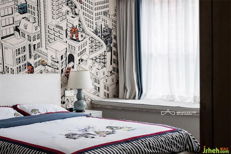 主臥采用中性灰色調(diào)統(tǒng)一雅致,