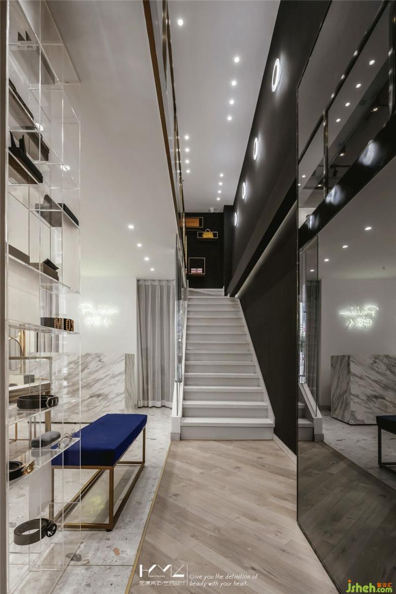 過道空間,裝修公司使用地板鋪設(shè),擁有更好的腳感和親和度,地板的鋪設(shè)角度也是精心考慮,讓地面空間更將活躍靈動(dòng);產(chǎn)品展示區(qū),地面選用時(shí)下流行的水磨石地磚,經(jīng)過打磨的精致石材肌理,也與我們的產(chǎn)品相呼應(yīng),同時(shí)也是更好的方便打理,在部分的展示背景墻面我們也使用了同樣肌理的水磨石墻磚,與地面呼應(yīng),同時(shí)保證空間的材質(zhì)更加整體統(tǒng)一。
