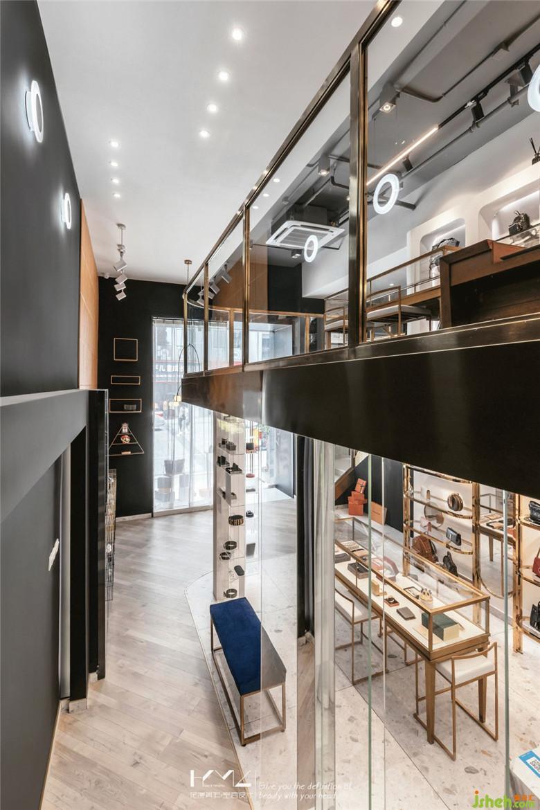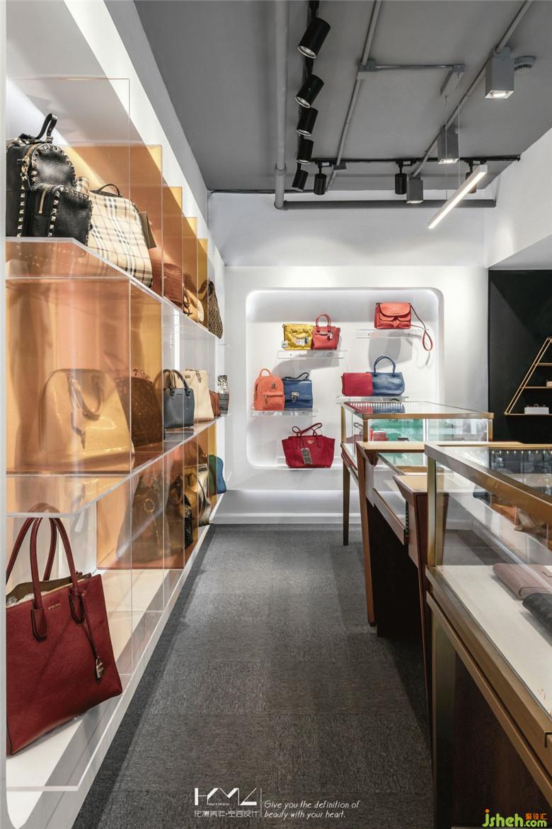 二層展架結(jié)合內(nèi)凹的墻面,裝修公司運(yùn)用透明與橙色的亞克力板,定制成品置物格,在燈光的烘托下,亞克力材質(zhì)的通透質(zhì)感應(yīng)運(yùn)而生,與展品交相呼應(yīng)。