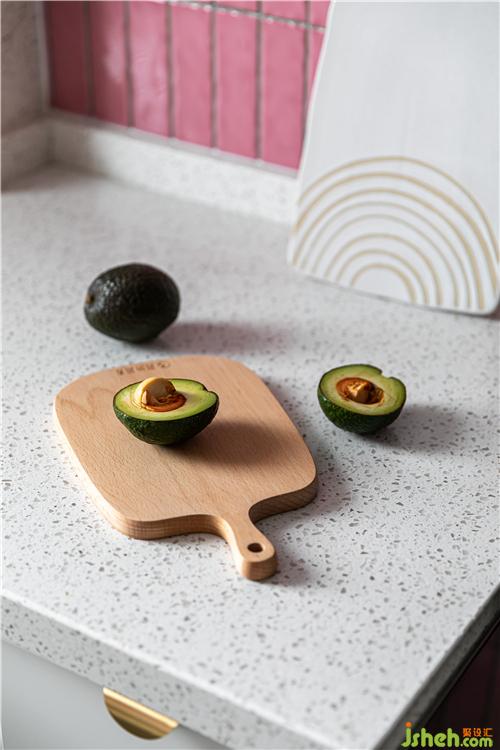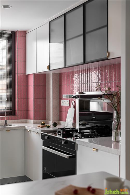 廚房的最大的亮點(diǎn)就是大面積小粉磚的鋪貼,將這個(gè)小小的廚房襯的溫馨自然.