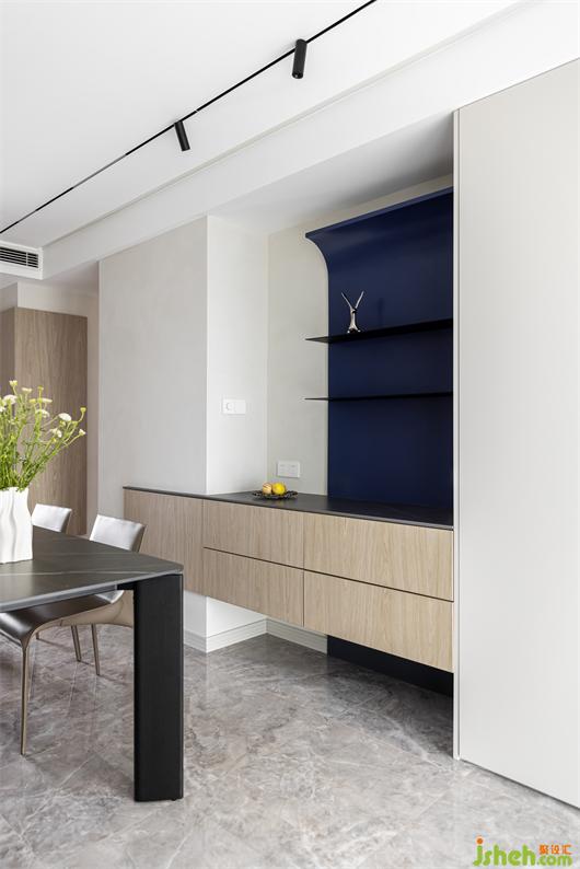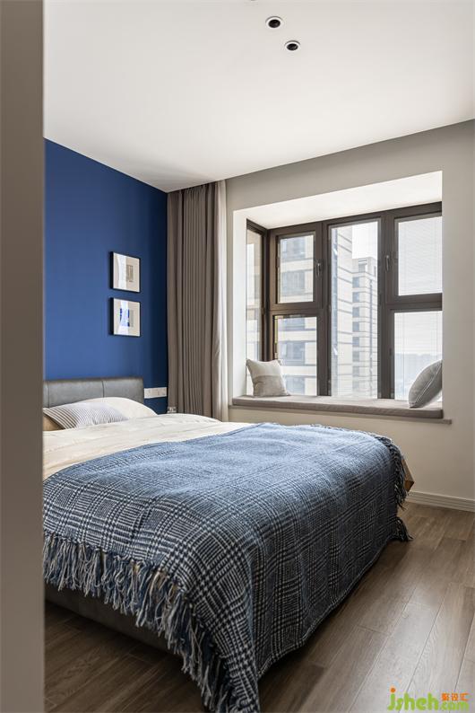 主臥以克萊因藍(lán)為顏色元素 ,也是空間的氣質(zhì)引現(xiàn),它是沉穩(wěn)且富于沉淀的,它決定了空間最重要的氛圍感和氣質(zhì)屬性,傳遞一種被藍(lán)色環(huán)繞且放松的情緒,希望帶給屋主舒適的居住體驗(yàn).