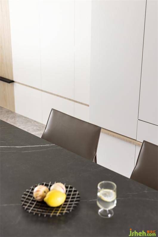 廚房設(shè)置高低臺(tái)面,符合人體工學(xué),炒菜洗菜更加輕松. 定制鋼板置物架,釋放臺(tái)面空間,干凈整潔.