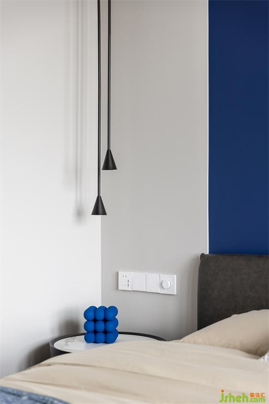 純白色與灰色,適度的點綴絲絨質(zhì)感,打造出簡約干凈、素雅的時尚空間. 線條感壁燈點綴墻面,為空間增添了溫馨感.