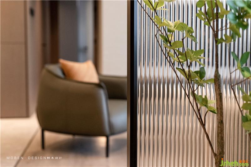 地面黑色不銹鋼收邊條、墻面隱形門門縫、天花不銹鋼和地面的分割呼應(yīng)、讓整體空間得以貫通