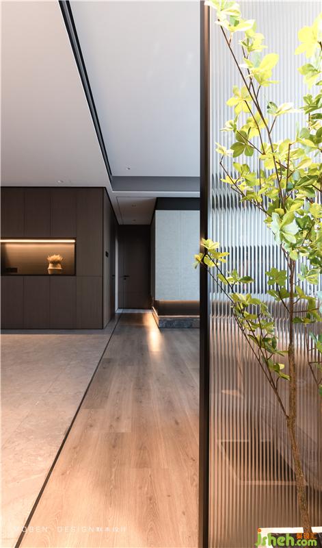 簡約大平頂、木質(zhì)感柜體、石材質(zhì)感地面、構(gòu)成沉穩(wěn)大氣的空間氛圍