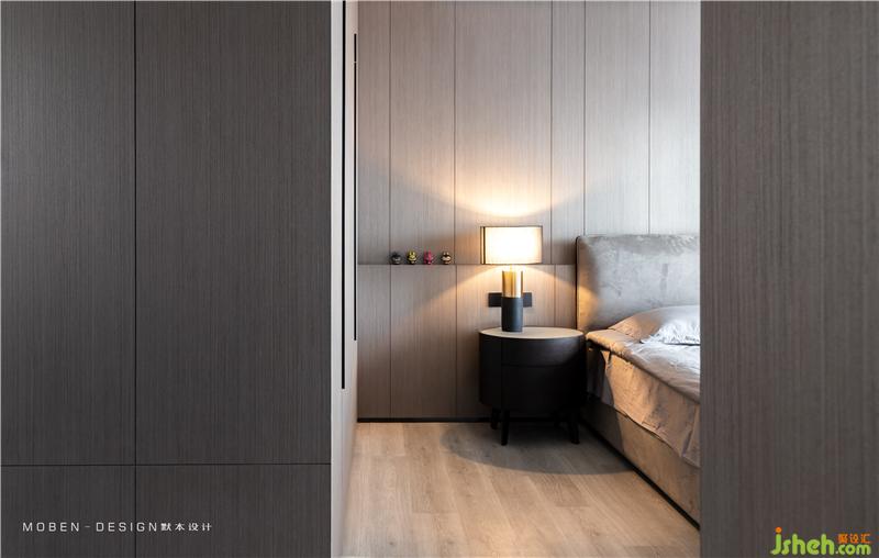 床頭背景使用轉(zhuǎn)折延伸的設(shè)計手法,低調(diào)有氣質(zhì)