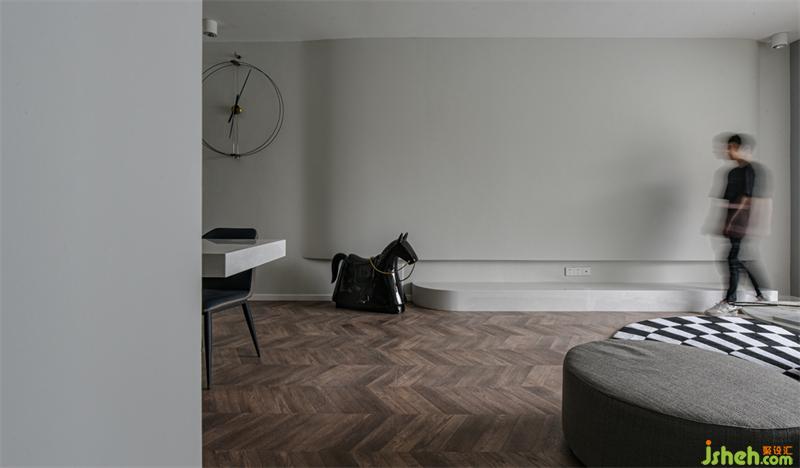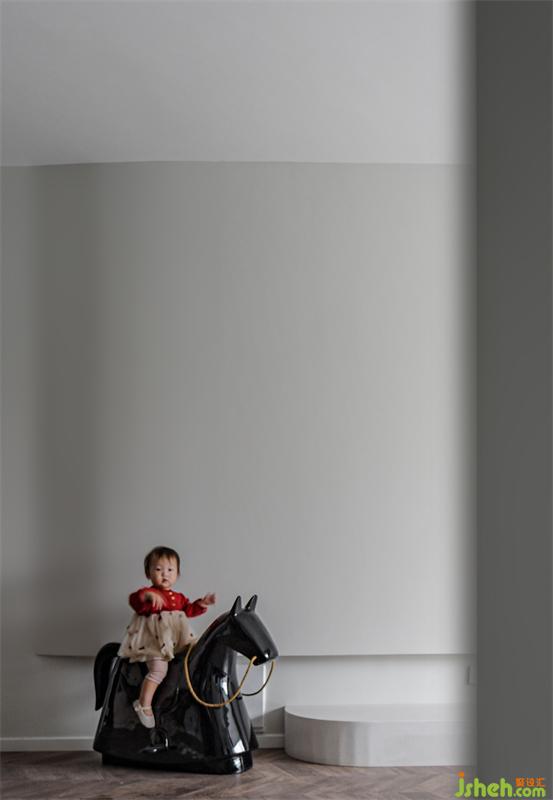 在空間的造型上我們希望簡潔明快,客廳墻面我們去掉了明確的電視墻,通過預留的大白希望能他們一家能慢慢的將它填滿。等小朋友大了也可以將這個墻面增加激光電視投屏,用時間來換取不同的空間需求這是我們對待本次空間的態(tài)度。