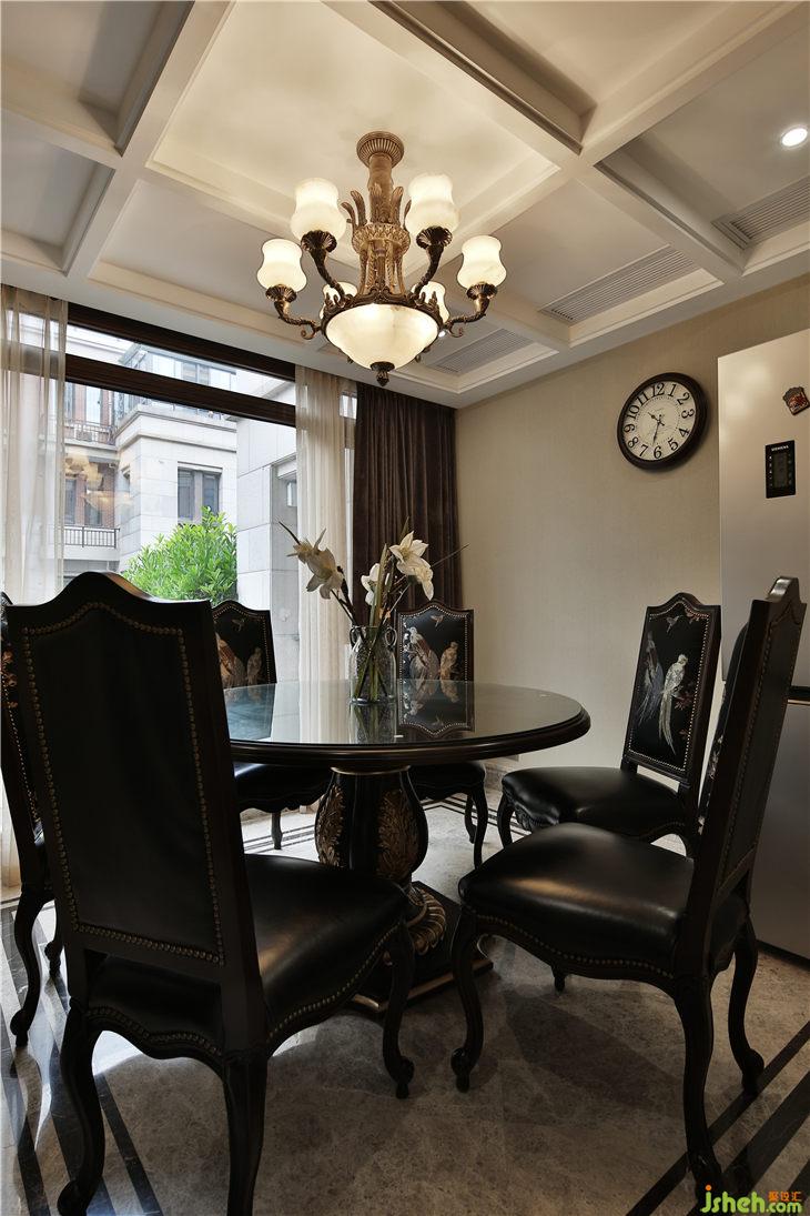 餐廳是家居生活的心臟,不僅要美觀,更要注重實(shí)用性、整體性。餐廳的燈光很重要,既不能太強(qiáng)也不能太弱。本案燈光以溫馨的暖黃色為基調(diào)。