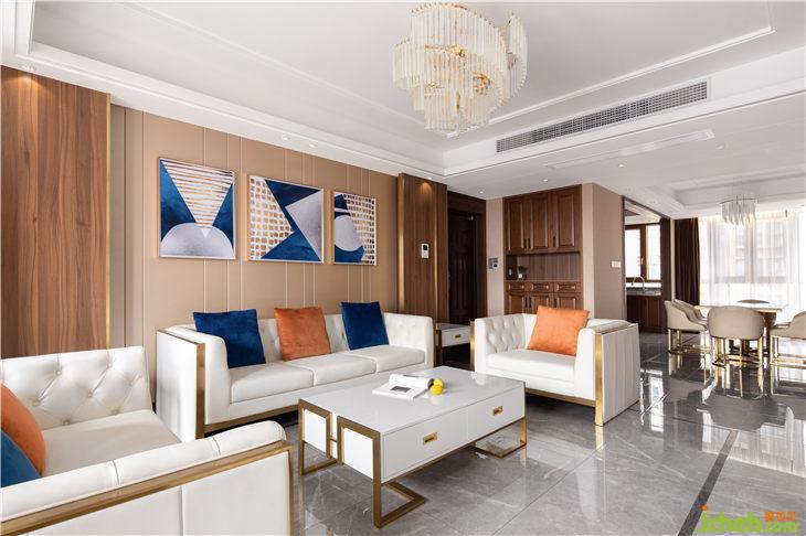 本案結(jié)合白、灰、香檳金等大氣典雅的調(diào)子,在設計方向從“輕奢”入手。正如馬蒂斯所說,“繪畫應該是純粹美感經(jīng)驗的體現(xiàn),其目的不在思想性和喻意,而在于線條、色彩、形態(tài)的愉悅和舒適。色彩與線條都是力量,創(chuàng)造的秘密就在于利用并平衡這些力量?!边@句話挪用到設計也是極為合適。在白色加香檳金的基礎上點綴油畫藍,使整個空間更具有詩情畫意。仿佛置身于春季的巴黎香榭麗舍的街道,爛漫而風情。