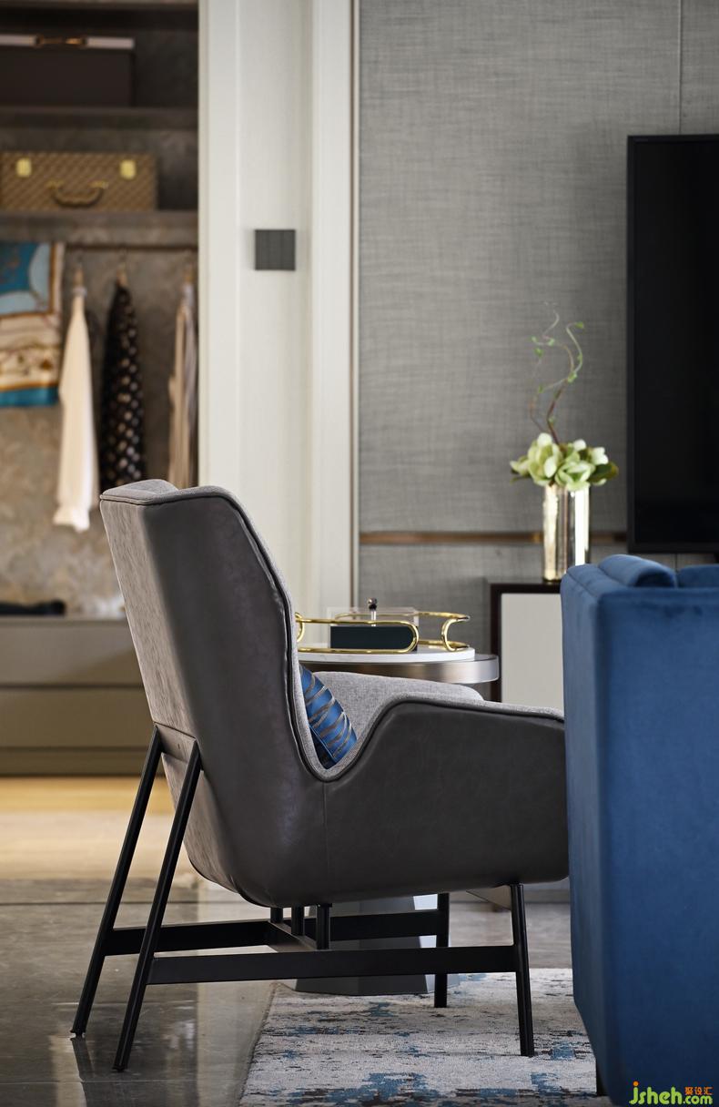 藍(lán)色通??梢杂脕?lái)隱喻紳士,也因此成為這個(gè)空間的主旋律。如同大海的藍(lán)色既有的深邃明凈,有時(shí)又通過(guò)揚(yáng)起的浪花給人以熱情奔放的印象。