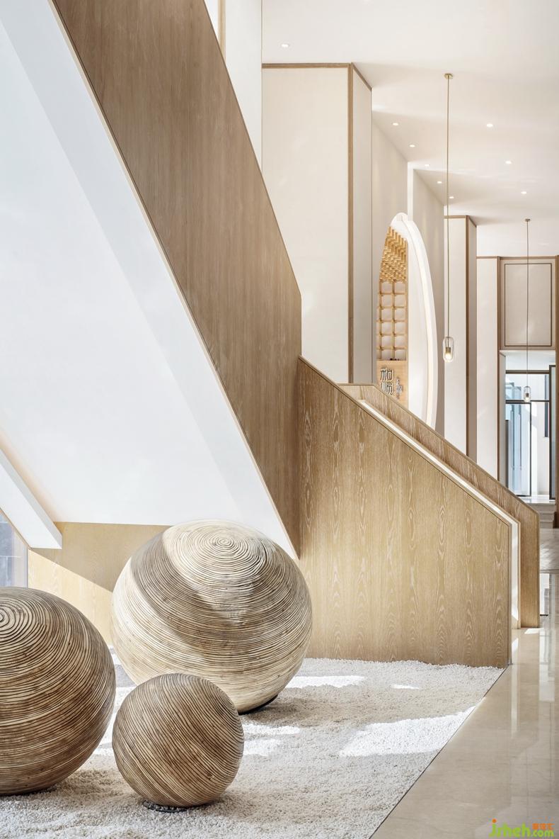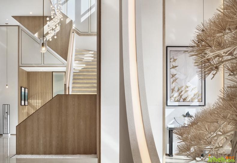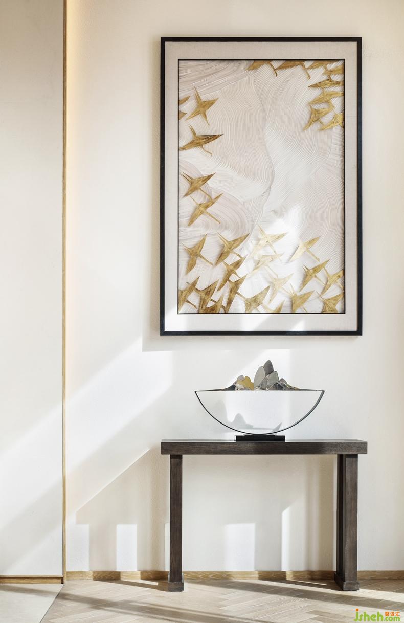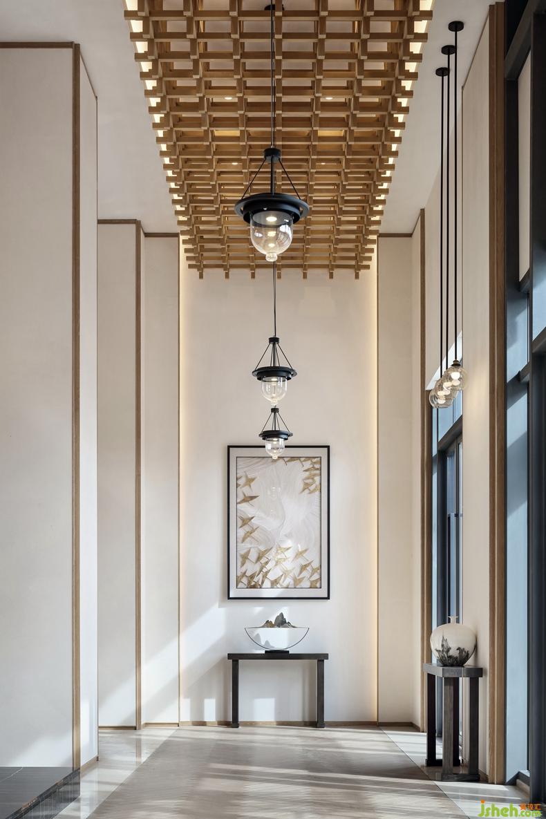 光是空間最好的組成部分,以純凈之態(tài)滲透進(jìn)廊道,變幻出美妙的光影韻律。簡(jiǎn)約的裝飾畫、山水?dāng)[件與木格天花自然相接,既起到點(diǎn)睛之筆,又在精致中不失古樸氣息。室內(nèi)設(shè)計(jì)師對(duì)于空間的感動(dòng),在一天的光影變幻中,慢慢展開。