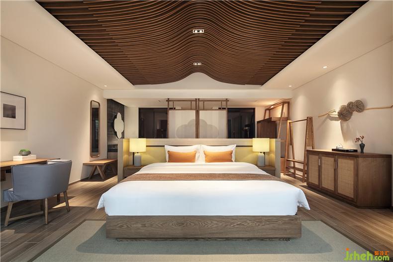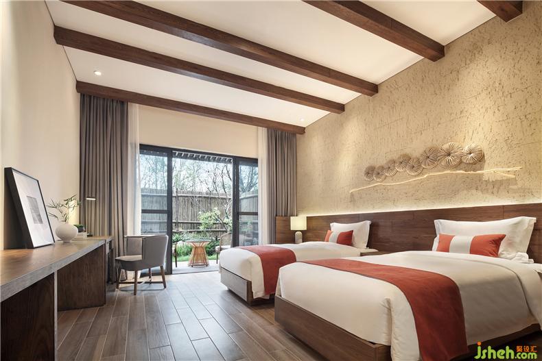 移步換景,得觀居室。室外晴日照,光影空靈,輔以竹藝、杏花等形色作點(diǎn)綴,酒店設(shè)計(jì)于方寸之間,交織出一室簡(jiǎn)約雅致。
