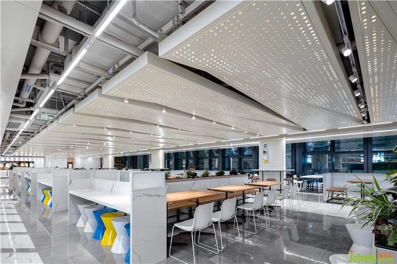 首先在就餐區(qū)的功能分布上,除了具備樓上具備的功能外,我們又在咖啡吧附近增加了更加舒適的卡座區(qū)域,為員工提供了訪客接待,小組討論,會議和休閑的功能。