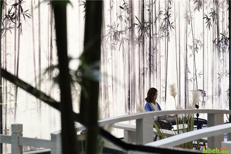 自然是空間轉(zhuǎn)換,人與人之間交流的最好的媒介。由室外的喧囂穿越到高聳、蔥郁的林間,光影斑駁,水聲潺潺,絲竹入耳,氛圍的塑造讓就餐的心情更加放松愉悅。