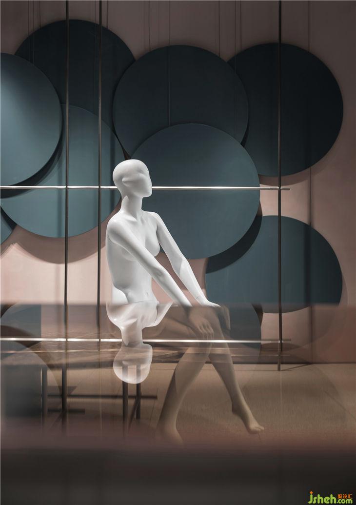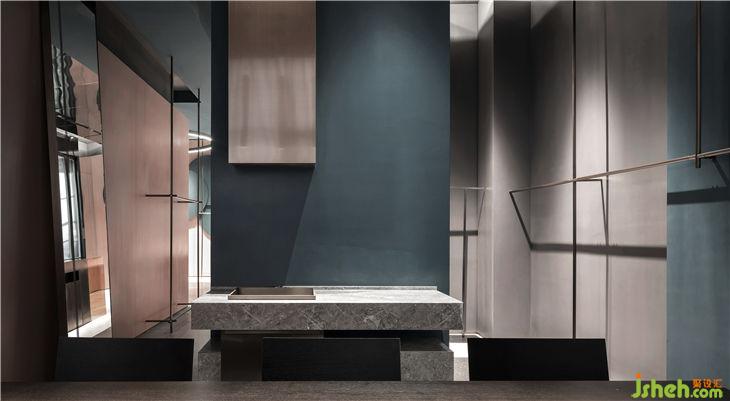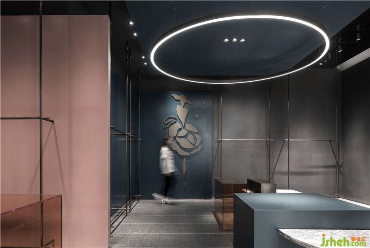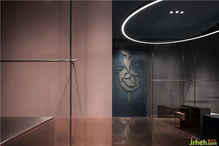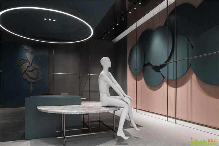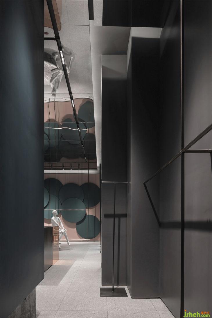 為了在空間里達(dá)到視覺上新的認(rèn)知驚喜與商業(yè)趣味性,在天花局部使用鏡面金屬,在橫向與豎向的空間達(dá)到延伸與折變,獲得新的視覺體驗;