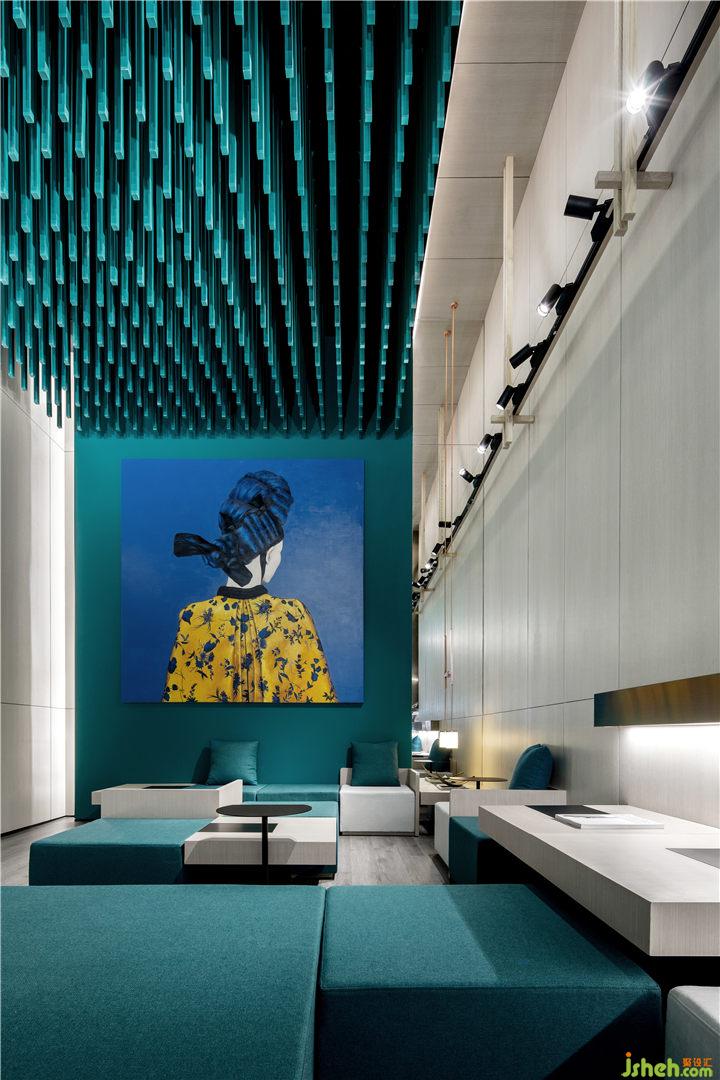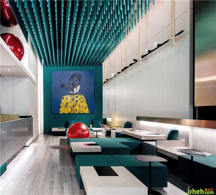 項(xiàng)目選址深圳核心腹地福田轄區(qū),聚合周圍高效的商務(wù)人流能量,開辟出一個(gè)半公共的獨(dú)特社交領(lǐng)地。模塊化座椅系統(tǒng)由沿街面延伸至室內(nèi),引領(lǐng)行人進(jìn)店探索。淺色簡(jiǎn)潔的地板與雕塑式的天花形成對(duì)比,藝術(shù)裝飾畫更為墻面增添點(diǎn)睛之筆。
