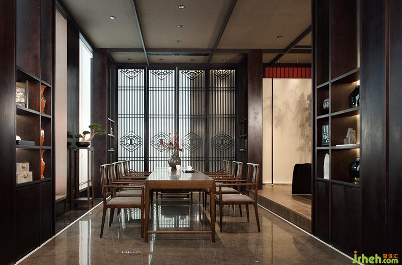 空間序列的表達(dá)上采用了中軸線序列漸進(jìn)方式與園林的行游動(dòng)線結(jié)合。中軸線的對(duì)稱序列關(guān)系,經(jīng)常被引申為儒家思想的禮序關(guān)系,及皇家的高大壯美,與宗教的肅穆與莊嚴(yán)也有暗合,而我更愿意去看到這種序列關(guān)系帶來的安靜,中正和韻律感。室內(nèi)設(shè)計(jì)師而園林的行望游居動(dòng)線,則讓空間的進(jìn)入感與空間層次感愈加豐富靈動(dòng)。
