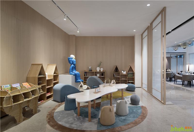 小朋友們在此嬉戲玩樂。巨型藝術雕塑KAWS顯得格外亮眼,小小的家具錯落有致,書架上隨處可見童趣滿滿的繪本圖書,可愛的卡通擺件點綴著每個角落。