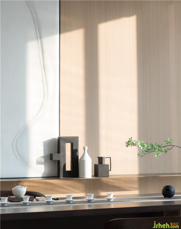 屏風模糊了空間界限,茶室似隔似合,藝術畫的選擇以留白注解,若隱若現(xiàn)。器皿選色素雅,插花藝術更是展現(xiàn)了不一樣的空間詩意美學。文人墨客,清茶一杯,談吐風雅;蕓蕓眾生,一茗在手,靜謐中返觀自心。