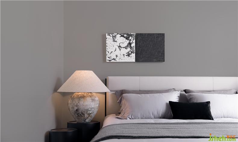 色彩上,溫柔舒適的茶白色遇上莊肅的炭黑色,剛與柔的結(jié)合,黑與白的交錯,胭脂色游走在其中,碰撞出寧靜悠揚舒適的環(huán)境。