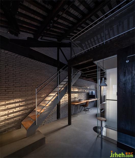 Based onindustrial style, [Fan] and[Hong] convey arestrained and coldly elegant sense ofbeautywith neat lines, naked walls oforiginal color and metal, whilegeometric shapes andconstitutive property constitute aneutral and pure spaceexperience, which is rough andunconventional yet with no lack offineness.