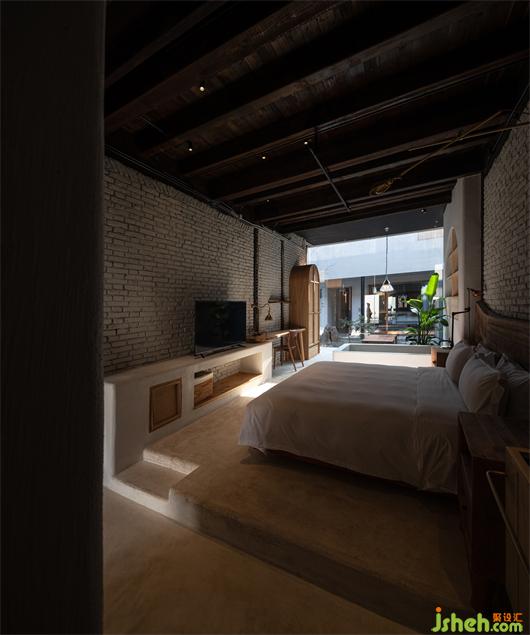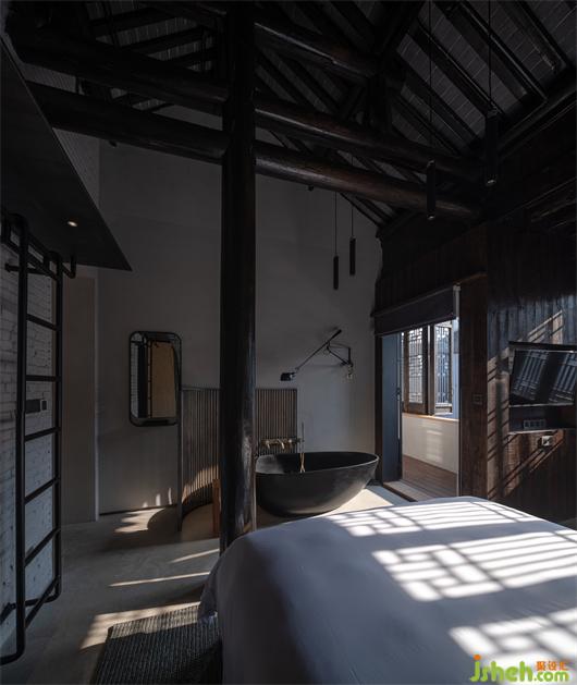 [Run] and [Yang] are two loft-styleduplexes of the hotel.The contrast between frostedstainless steel and log andprimitive naked wall as well as therhythmic ordering of spacereflect the sense of order ofdeconstructionism. Besides, [Yang]has showngreat ingenuity increating a suspended mesh-like rest area, whichappearsnovel and unique and makes aninteresting experience.