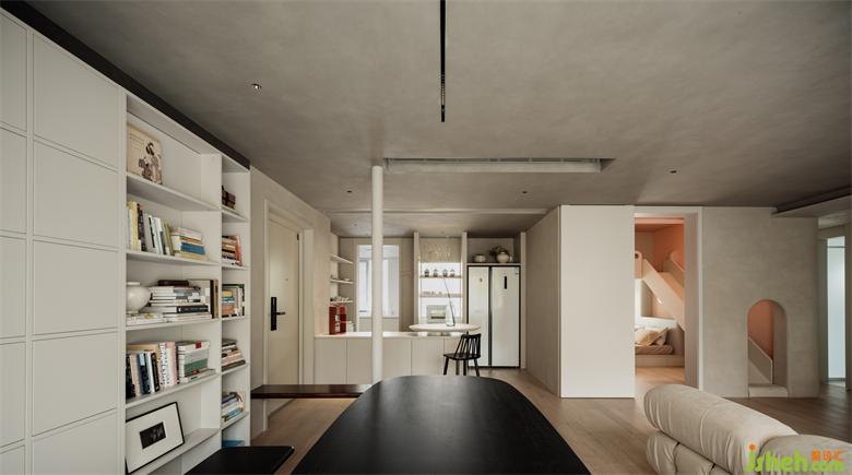 Therefore, I hope that the space can be more architectural. Therefore, a large area of off-white extends to most of the space area. At the same time, through technical means, the visual experience of most materials (paint, custom woodwork, slate, curtains, ceramic tiles, etc.) in the space is unified. This coordinated beauty is comfortable.