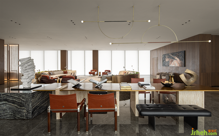 帶手工縫制馬鞍皮革曲線的麗娃休閑椅,卡哈瓦咖啡桌,薩凡納的鱸魚燈,經(jīng)典的家具與燈飾名字一旦說出,西安會所設(shè)計猶如在空間中施展魔法。