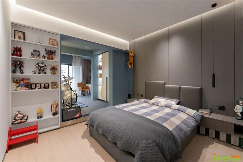 周全的設(shè)計建立在對業(yè)主生活的體察上,占據(jù)陽臺的一部分融入臥室,麗雅龍城住宅設(shè)計用藍色盒子點亮少年的夢想,與休息區(qū)域動靜結(jié)合,色彩的搭配碰撞出蓬勃的活力。