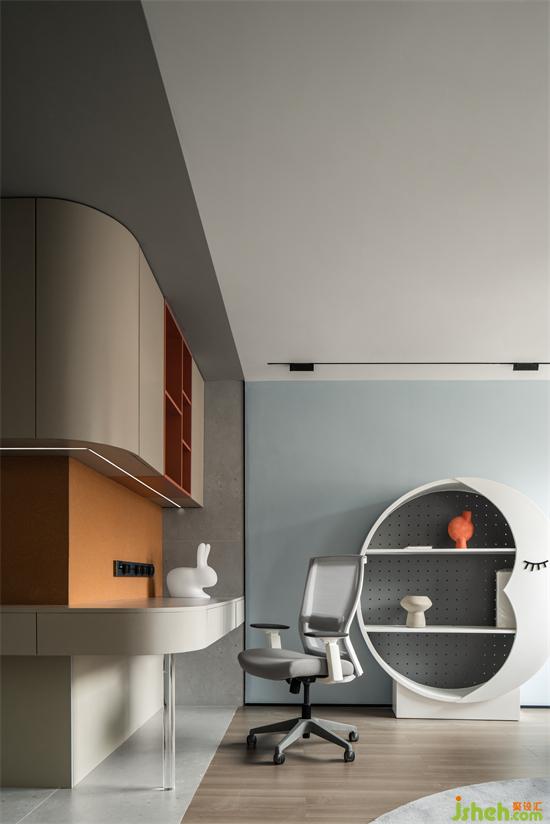 淺灰、淡藍(lán)點(diǎn)綴活力的橙