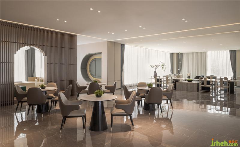跳脫既有的概念限定,藍(lán)城著意搭建一個(gè)可供分享、交流、體驗(yàn)的生活館。為了營(yíng)造歸家特有的溫暖質(zhì)感,設(shè)計(jì)師以夕陽(yáng)晚照的瀲滟波光為靈感,衍化出沉靜典雅的色彩基調(diào)。售樓處設(shè)計(jì)