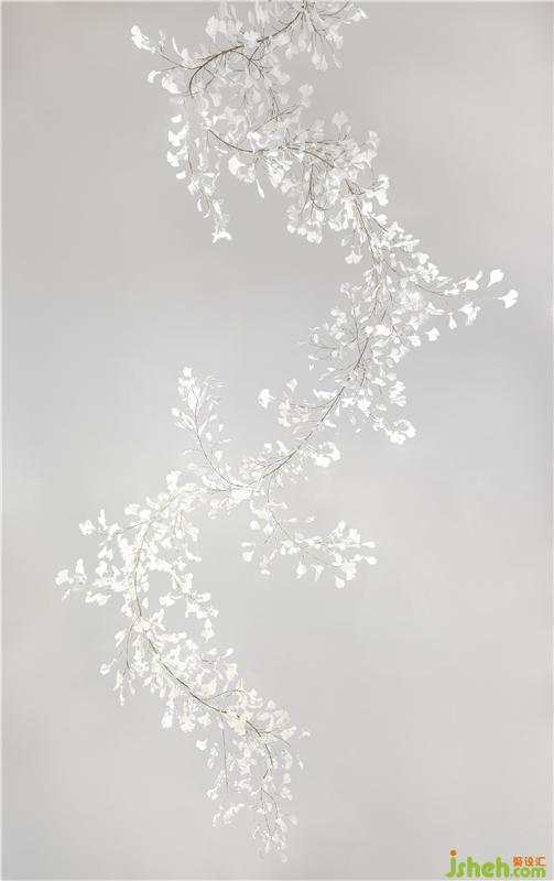 洗手間內(nèi),材質(zhì)的水波紋肌理在立面上得到了延續(xù),純粹的淺淡背景讓這一隅空間更為靜謐松弛。鏡面的圓角、現(xiàn)代掛畫裝置則以不同形式呼應(yīng)著曲線的主題。在設(shè)計師的敘述里,紫薇的纖巧、曲線的起伏成為了幻化萬千的原象,于古今之間構(gòu)筑起聯(lián)通的呼吸。由此發(fā)想,也只有將歷史推演至當下,讓文化扎根于生活,東方的情味似乎才能真正地融于我們的感官——清雅而自然,生生而不息。