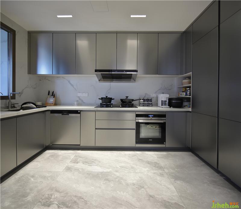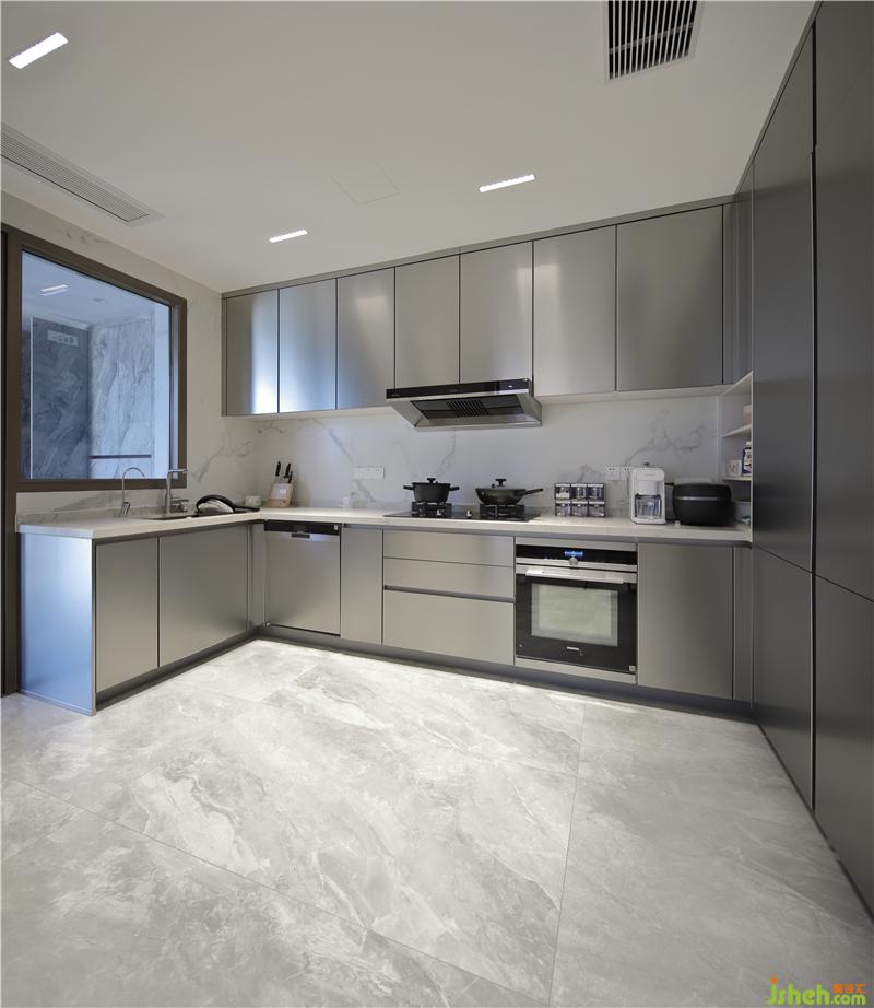 金屬拉絲高級灰與貫穿生活陽臺、包括廚房和餐廳。提供了和諧和無縫的體驗,合理的功能分布廚房的功能性是必不可少的??臻g非常細致,與人的尺度和觸感成比例,深圳裝修設計同時注重人體工程學。