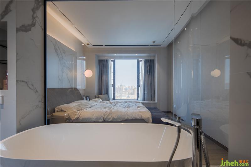 淋浴間連接臥室生活與藝術(shù)的橋,陽(yáng)光撒入臥室一隅,時(shí)間隨之慢了下來(lái),意趣中享受閑適的生活。