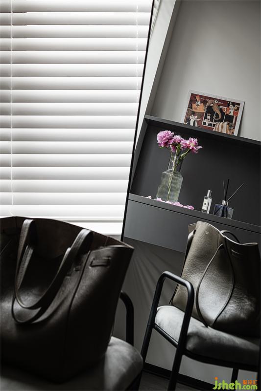 整個(gè)房屋的設(shè)計(jì)簡(jiǎn)約、素雅而靜謐,在灰色主調(diào)下,我們?cè)跁恐悬c(diǎn)綴了紅色,讓空間呈現(xiàn)出神秘的色彩美學(xué)。深色漆與灰色地磚、灰色柜子的搭配,讓書房有嚴(yán)謹(jǐn)感受,也同時(shí)有屋主內(nèi)心喜歡的色彩。