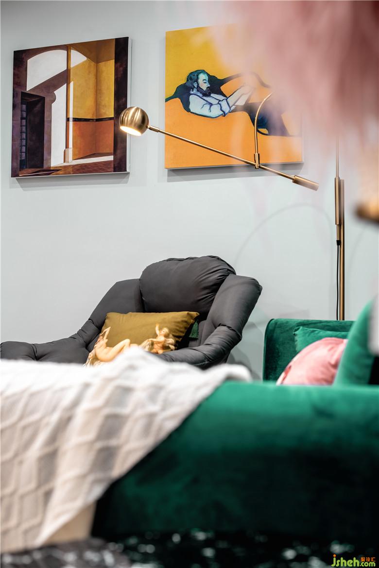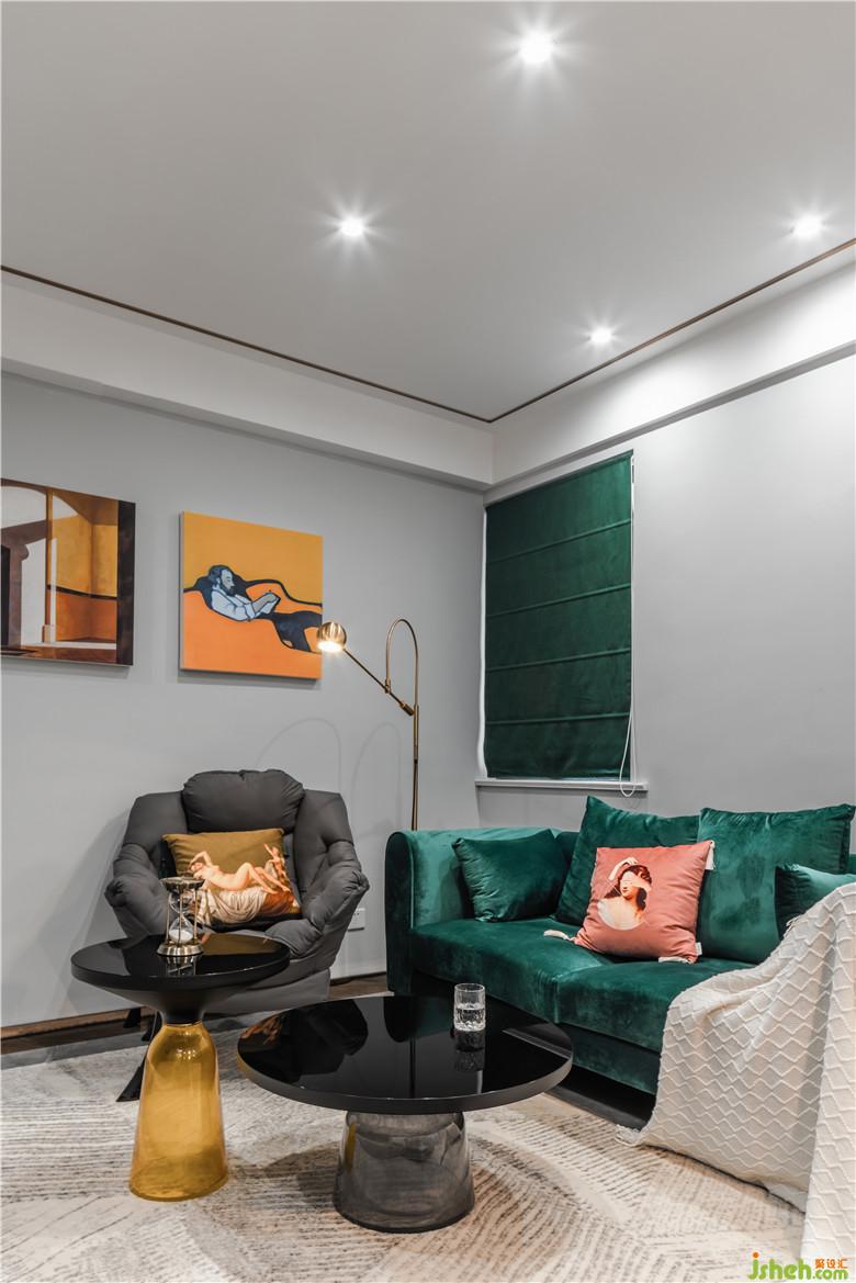 項(xiàng)目位于蕪湖城東市政府旁的小兩居,業(yè)主偶爾去住,所以對(duì)廚房、餐廳以及陽臺(tái)的功能性不做要求,裝修公司放棄了次臥改為客廳、增大餐廳面積并且把冰箱從廚房移出來的設(shè)計(jì)方案。本案摒棄小空間常用的北歐風(fēng)格,以墨綠色與灰色構(gòu)成強(qiáng)烈對(duì)比,通過香檳金的搭配,渲染上一層精致格調(diào)。全屋采用無主燈設(shè)計(jì),以點(diǎn)光源、線光源烘托居室氛圍。