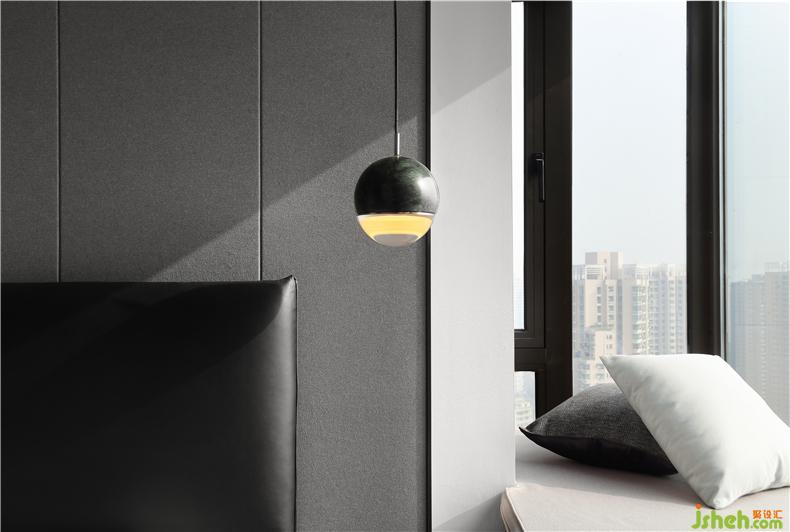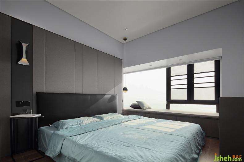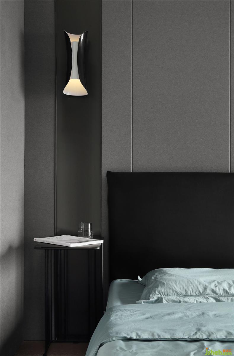 床頭背景墻是硬包混搭啞光鋼板,再與黑色床頭進(jìn)行混搭,寥寥幾筆便將臥室的硬朗腔調(diào)勾勒出來。